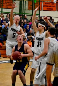 By halftime, the Phoenix held a 35-18 lead. But in the third quarter, the Cougars started creeping back. Mt. Blue’s second-half charge wasn’t enough to foil the Phoenix and Spruce still led 53-34 going into the fourth quarter.