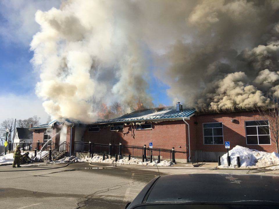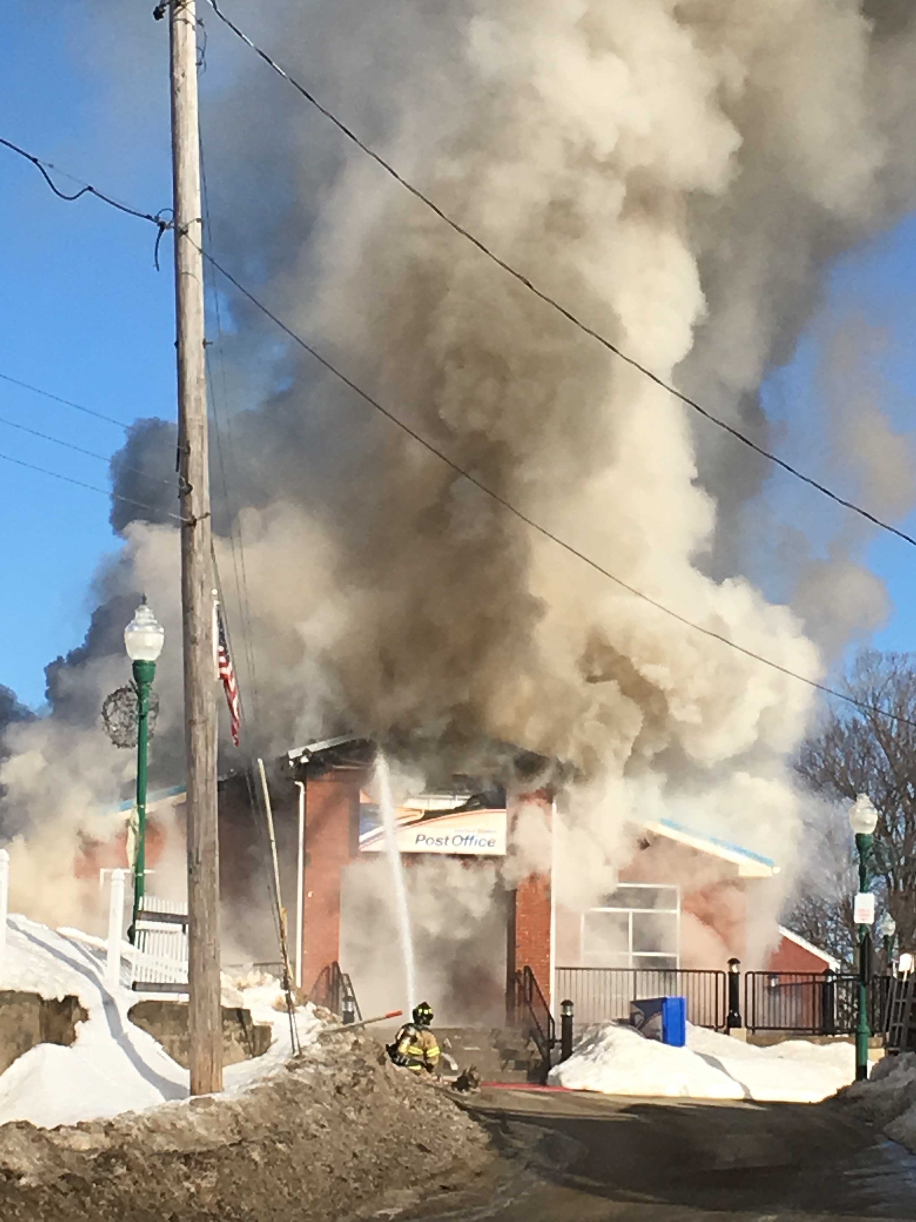 WINTHROP — A fire ripped through the Winthrop Post Office Tuesday morning, sending heavy smoke into the air