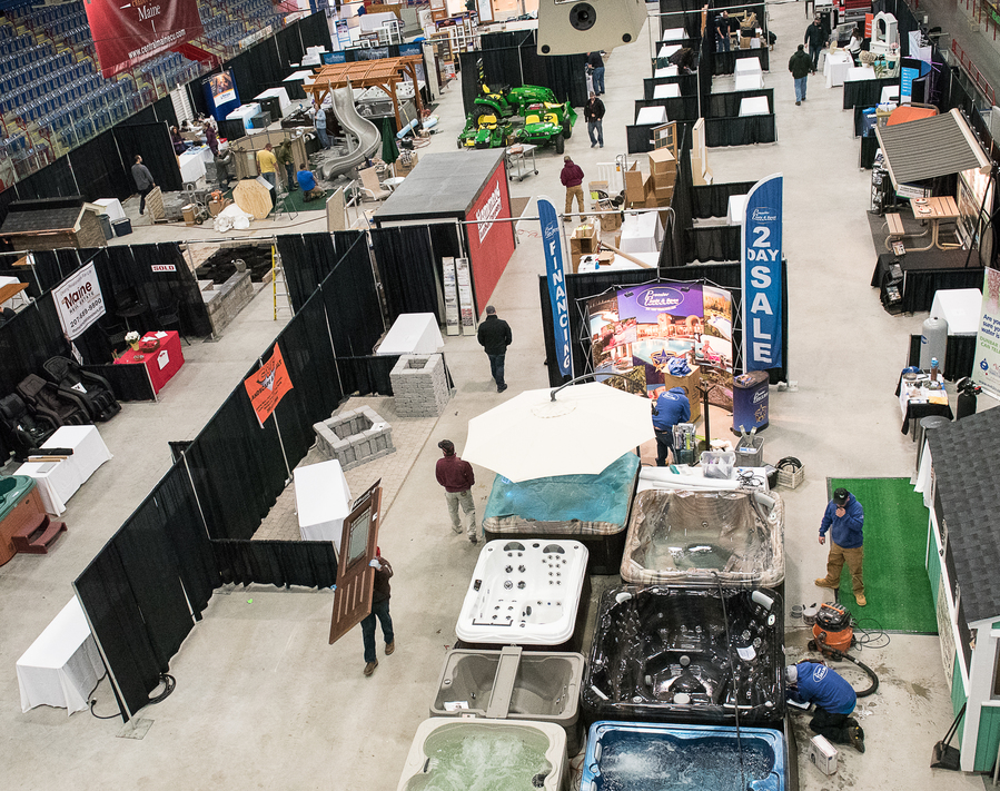 Some of the 75 vendors at the 6th Annual Maine Home Show in Lewiston set up at the Androscoggin Bank Colisee in Lewiston on Friday afternoon in preparation for this weekend’s exhibition. Event organizer Travis Dow themed it Cure Cabin Fever. The show runs from 10 a.m. to 7 p.m. Saturday, and 10 a.m. to 4 p.m. Sunday. For more information, visit MaineHomeShow.com.Some of the 75 vendors at the 6th Annual Maine Home Show in Lewiston set up at the Androscoggin Bank Colisee in Lewiston on Friday afternoon in preparation for this weekend’s show. Event organizer Travis Dow has themed it Cure Cabin Fever. The show runs from 10 a.m. to 7 p.m. Saturday, and 10 a.m. to 4 p.m. Sunday. For more information, visit MaineHomeShow.com.Some of the 75 vendors at the 6th Annual Maine Home Show in Lewiston set up at the Androscoggin Bank Colisee in Lewiston on Friday afternoon in preparation for this weekend’s show. Event organizer Travis Dow has themed it Cure Cabin Fever. The show runs from 10 a.m. to 7 p.m. Saturday, and 10 a.m. to 4 p.m. Sunday. For more information, visit MaineHomeShow.com.