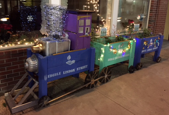 LEWISTON — Edible Lisbon Street is continuing. Healthy Androscoggin has turned its summer Edible Lisbon Street planters into a Holiday Giving Train for the community.