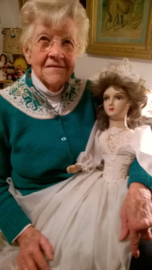 Hazel Currier holds the doll that has a place of honor in her bedroom. The doll is very similar to the one her husband, Owen, gave to her when the couple were first married, starting a lifelong pursuit. (Karen Schneider photo)
