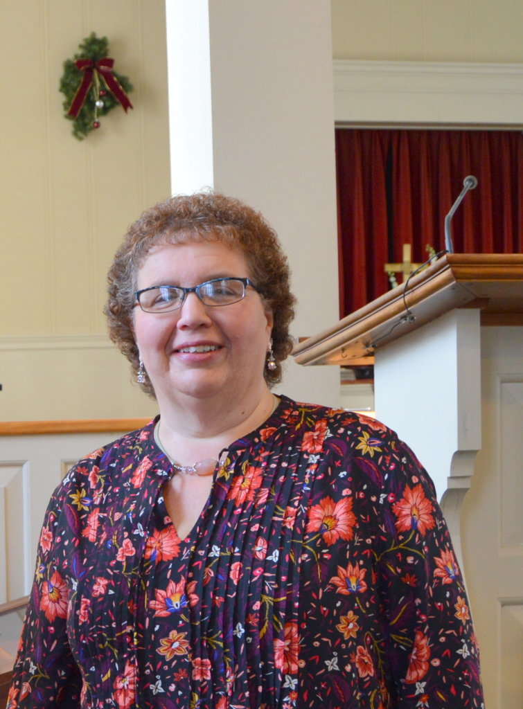 Crystal McBean prepares to light the Advent candles at Henderson Memorial Baptist Church in Farmington. (Ann Bryant/Franklin Journal)