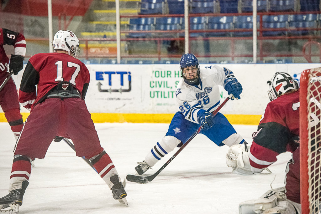 It was a short-lived lead, however. On a rush the other way, David Brown fed Nick Boudreau from behind the net to near the right post to beat Blue Devils goalie Jacob Smith 8:31 into the game.