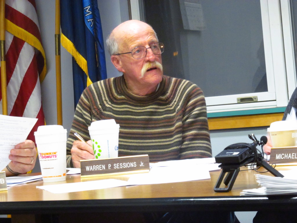 Warren Sessions Jr., chairman of the Norway Board of Selectmen, listens Thursday to SAD 17 Superintendent Rick Colpitts’ presentation on the district’s budgeting process. (Matthew Daigle/Sun Journal)