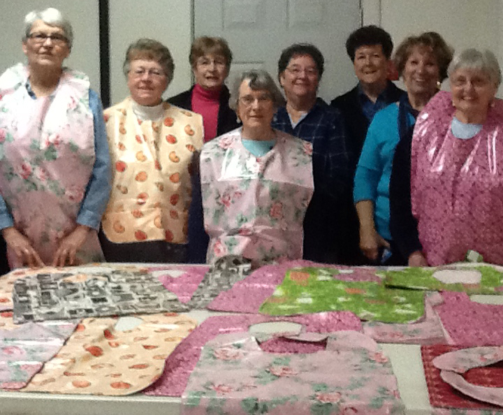 A group of women met recently for a morning of quilting at the Rumford Methodist Church, under the direction of Marcelle Miller. They completed 30 clothes protectors, which were presented to residents at the Rumford Community Home. From left are Mary Pulsifer, Kathy Crump, Sue Rand, Jean Boudreau, Georgette Beauchesne, Judy Palmer, Marchelle Miller and Naomi Robertson. Absent from photo is Peg Russell.