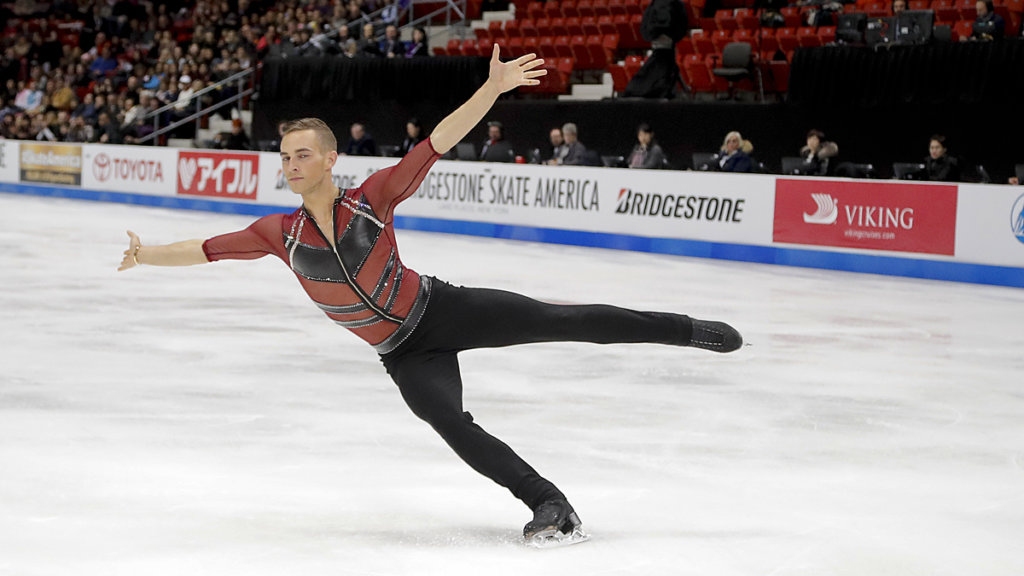 But on the practice ice, he was all business. Wearing a Team USA T-shirt and tights, he went through his short program, which ripples with sass and attitude. His spins were elegant, and his triple jumps exuded confidence.