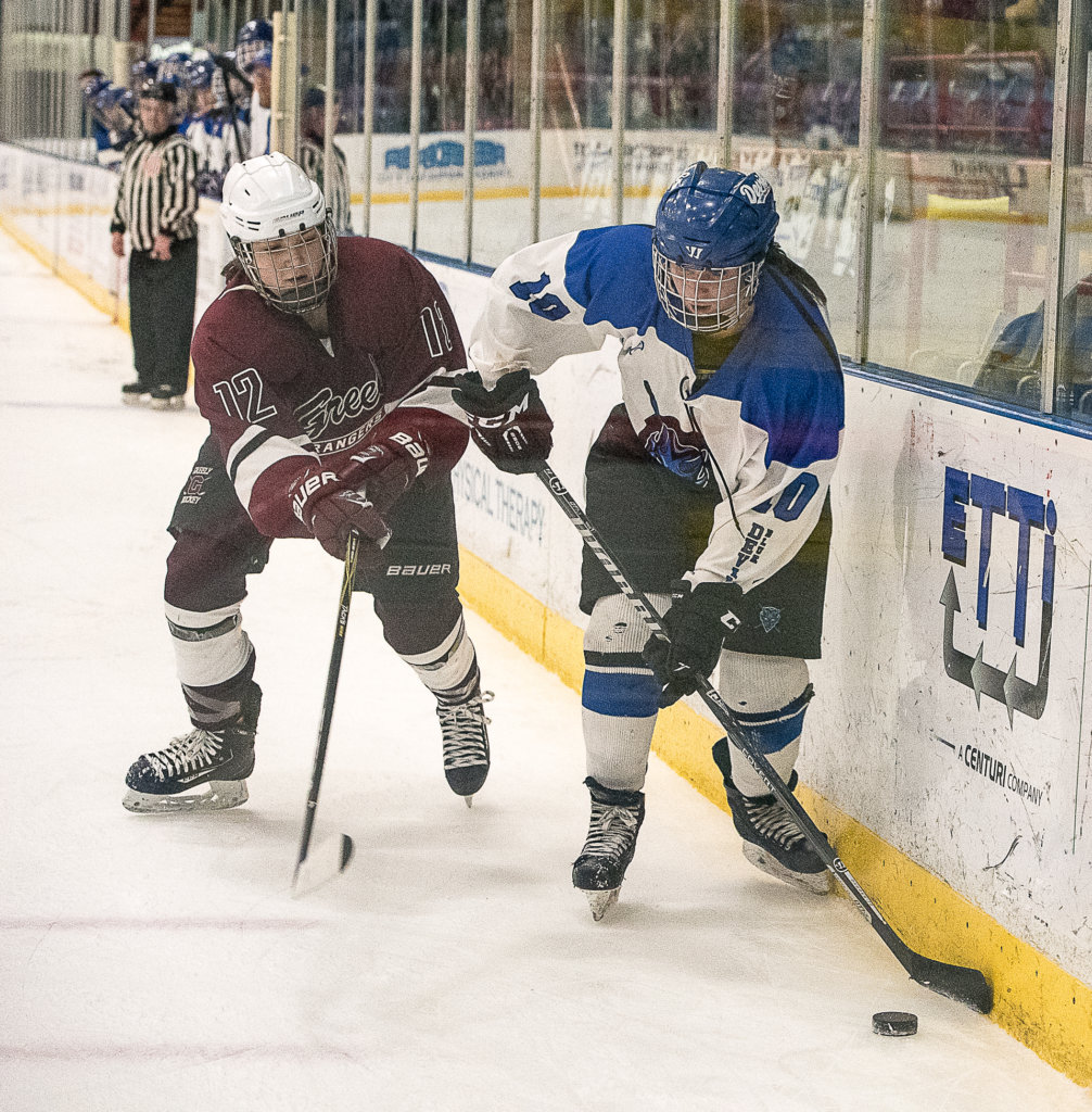 The Rangers scored 14 seconds in, with Molly Horton taking advantage of Courtney Sullivan’s wide shot and bounce off the end boards. Brie Dube fed Jordan Mynahan on a 2-on-1 with Rangers goalie Jordyn Owens to tie it for the Blue Devils with three minutes to go in the first.