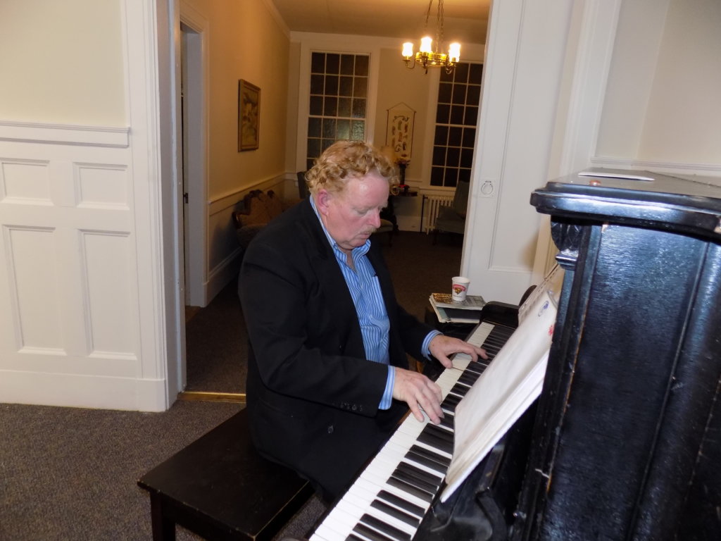 Alan Hutchinson of Jay plays at the piano at the Wilton Congregational Church, UCC’s bicentennial celebration and dinner Friday night. (Pam Harnden/Livermore Falls Advertiser)