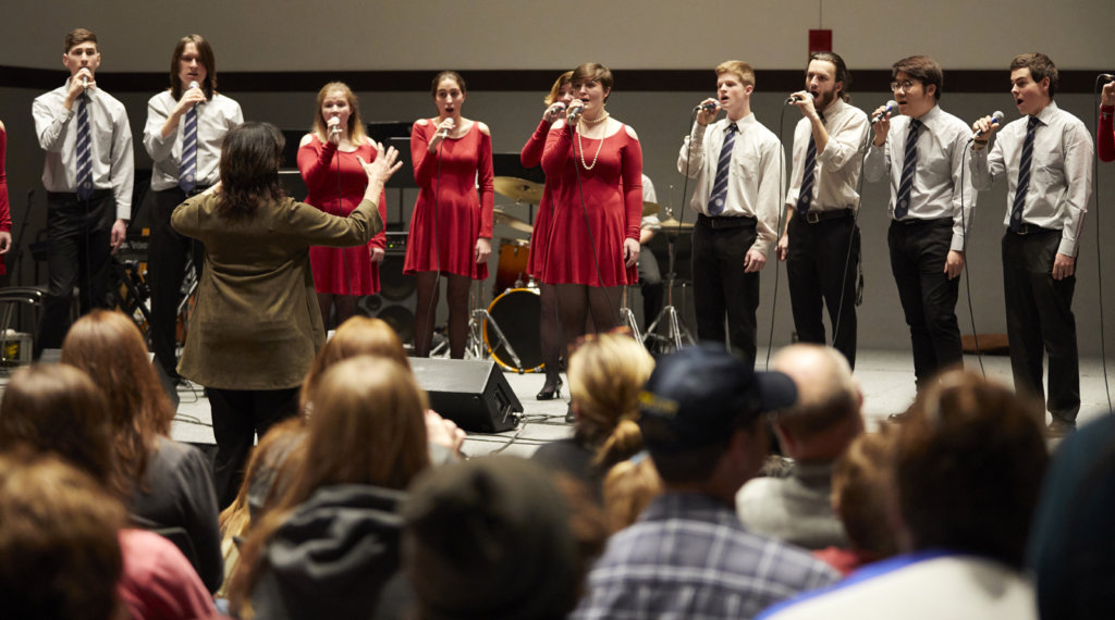 Members of the Fryeburg Academy Vocal Jazz Ensemble perform at the High School Jazz Festival.