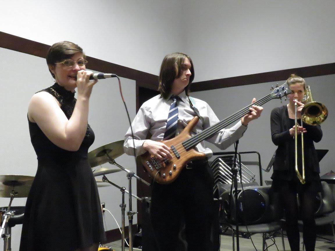 Judges Choice Award winner Ciara Neidlinger, left, performs with Owen Burk and Georgia Stafford of Fryeburg Academy’s New Standard Combo.