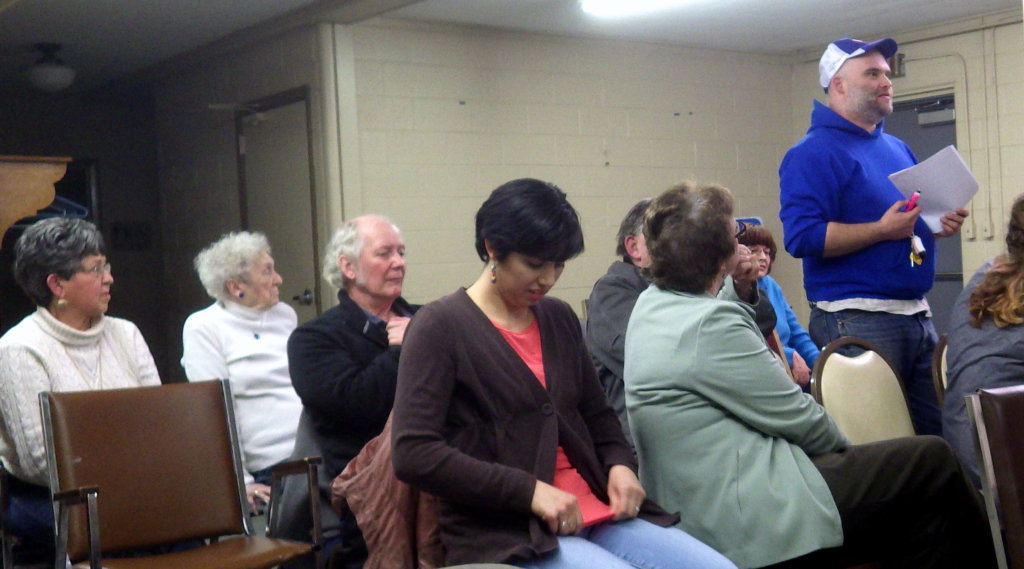 Aaron Dawson, standing, speaks in support of increasing the salary for Mexico Free Public Library Director Heather Rogers at Wednesday’s municipal budget meeting in Mexico. (Bruce Farrin/Rumford Falls Times)