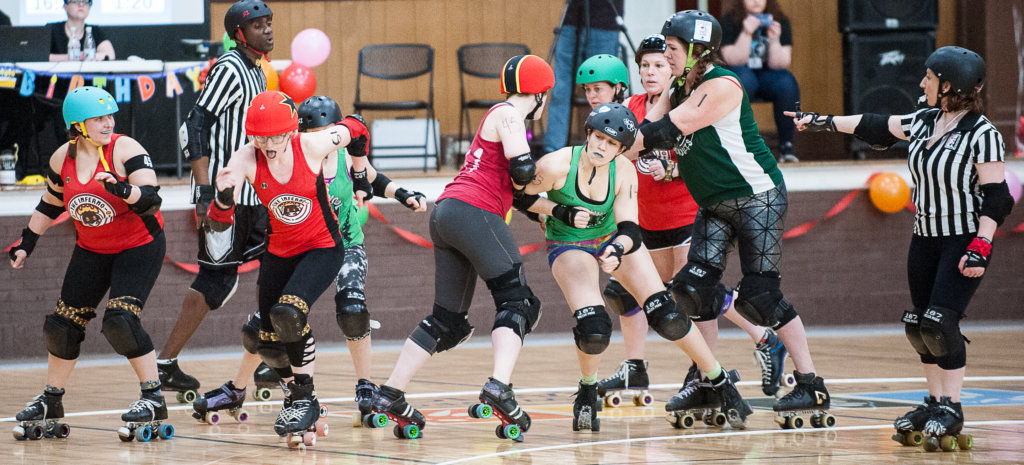 Like a congested roadway, the skaters of each team grouped together, while the jammers tried to get past the newly formed human barriers.