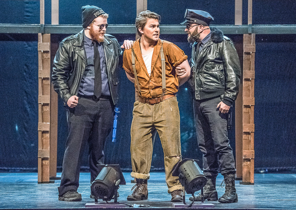 Everyone in power is corrupt, from Penelope Pennywise (played by Ashleigh St. Pierre), who is in charge of the local urinal, to the police (Jason Pelletier and Owen Kane), and the politicians (Mitch Thomas and Lucy Poland) — all the way up to Caldwell B. Caldwell (Dan Kane), the president and owner of Urine Good Company (UGC), which has a monopoly on all urinals.