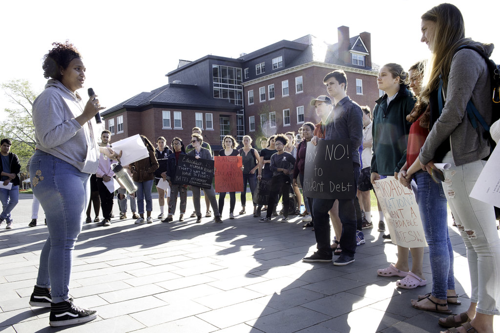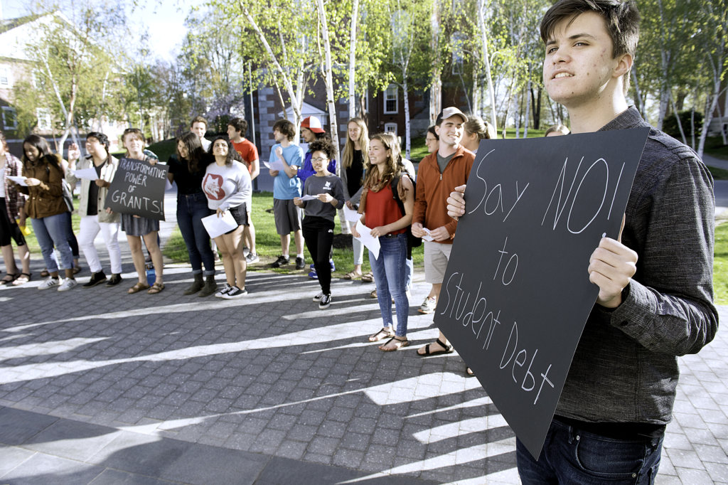 That concern led her to join about 40 fellow students for a rally through the heart of the campus Friday, calling on the college to join a national movement to offer more grants to low-income students so none have to rely on loans to attend Bates.