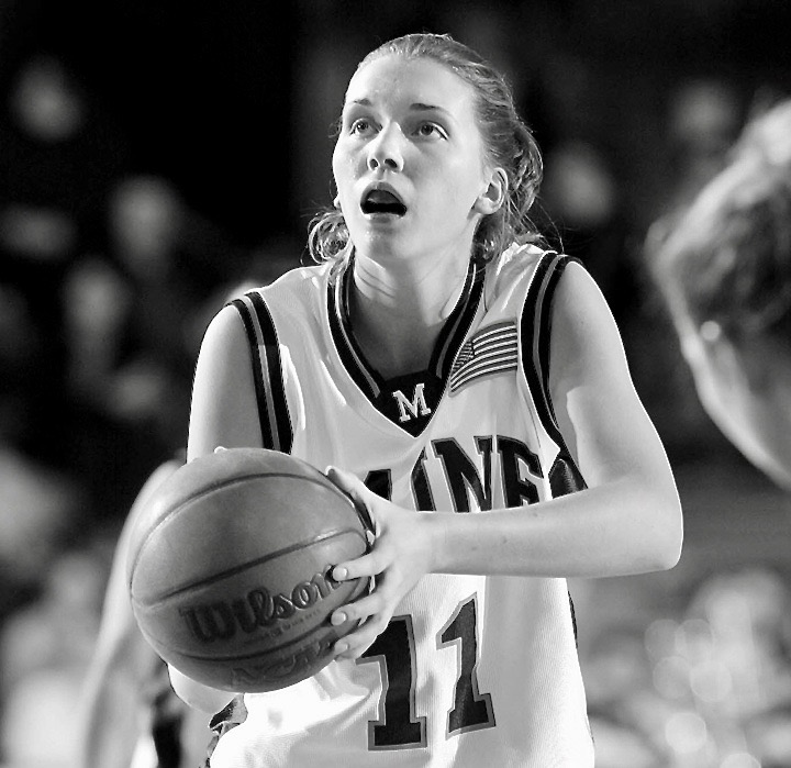 She then became a force for the Maine Black Bears for four years. Her jersey, No. 11, was retired in 2004 after a career that saw her amass the fifth-most points in team history. She joined Cindy Blodgett, Rachel Bouchard and Liz Coffin on a banner high above the court in Alfond Arena.