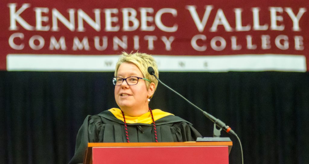 “We know you are a diverse crowd,” Beth Anne Lorigan, a trustee of the college, told the graduates. “Many of you are traditional students, just starting out on your life’s journey. Others have come to KVCC to learn new skills for a new career path. We have heard many of your stories and recognize that a good number of you come from nontraditional backgrounds — that many of you are already in the workforce, have a family and are even raising children. Despite these challenges, you still put in the time. You’ve done the hard work and successfully completed your program of study. And your accomplishments reaffirm our belief that when the people of Maine take advantage of opportunities found right in their communities, they invariably achieve their dreams.”