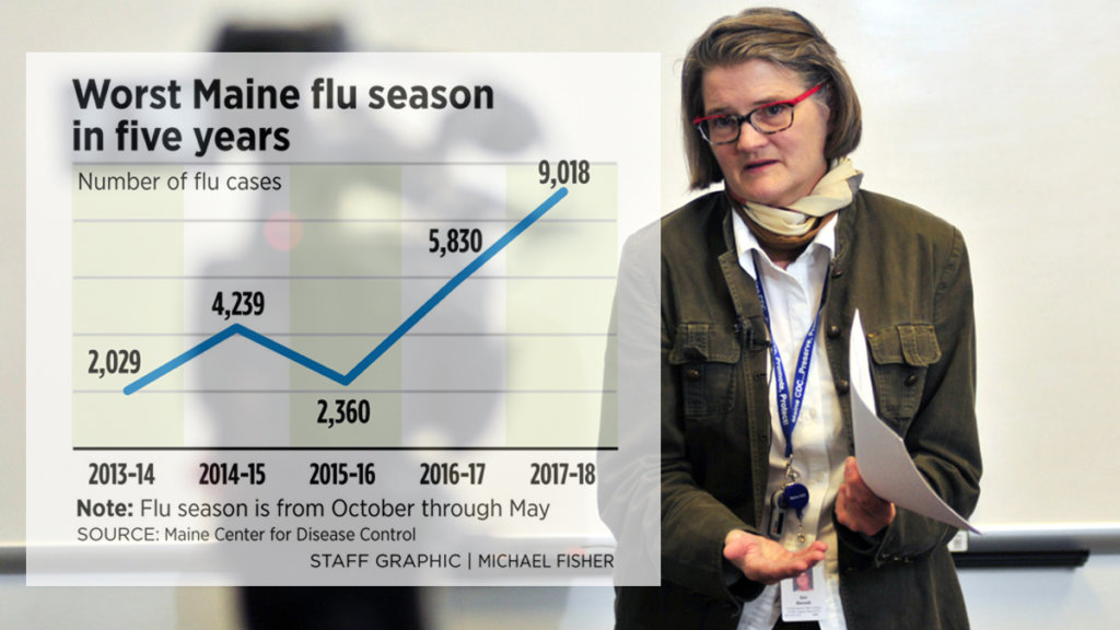 Dr. Siiri Bennett, state epidemiologist at the Maine CDC, said it is difficult to compare flu seasons because different strains of the virus circulate and Maine’s reporting of cases improves every year. Bennett said some of the increase can be attributed to better reporting by doctor’s offices and health organizations, although there is no doubt that 2017-18 was a severe season.
