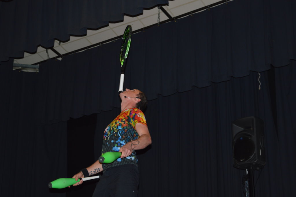 High energy juggler Jason Tardy performed at Mountain Valley Middle School on Friday during Believe in Yourself Day at the school. (Submitted photo)