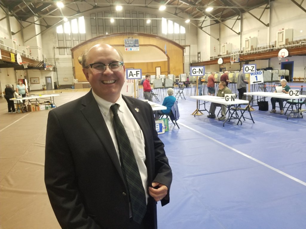 Secretary of State Matthew Dunlap at the Armory polling location Tuesday in Lewiston. (Steve Collins/Sun Journal)