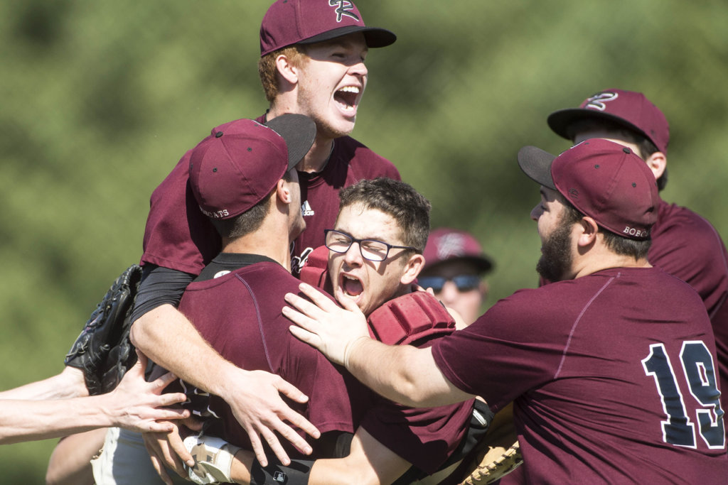 Richmond pitcher Zach Small (8) celebrates after throwing a no-hit shutout against Fort Fairfield in the Class D state championship game at Mansfield Stadium in Bangor on Saturday. Richmond defeated Fort Fairfield 11-0 in five innings. (Michael G. Seamans/Morning Sentinel)