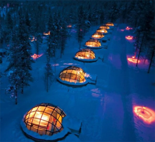 Glass-roofed igloos in northern Finland allow campers to watch the northern lights. (Roadtrippers.com)