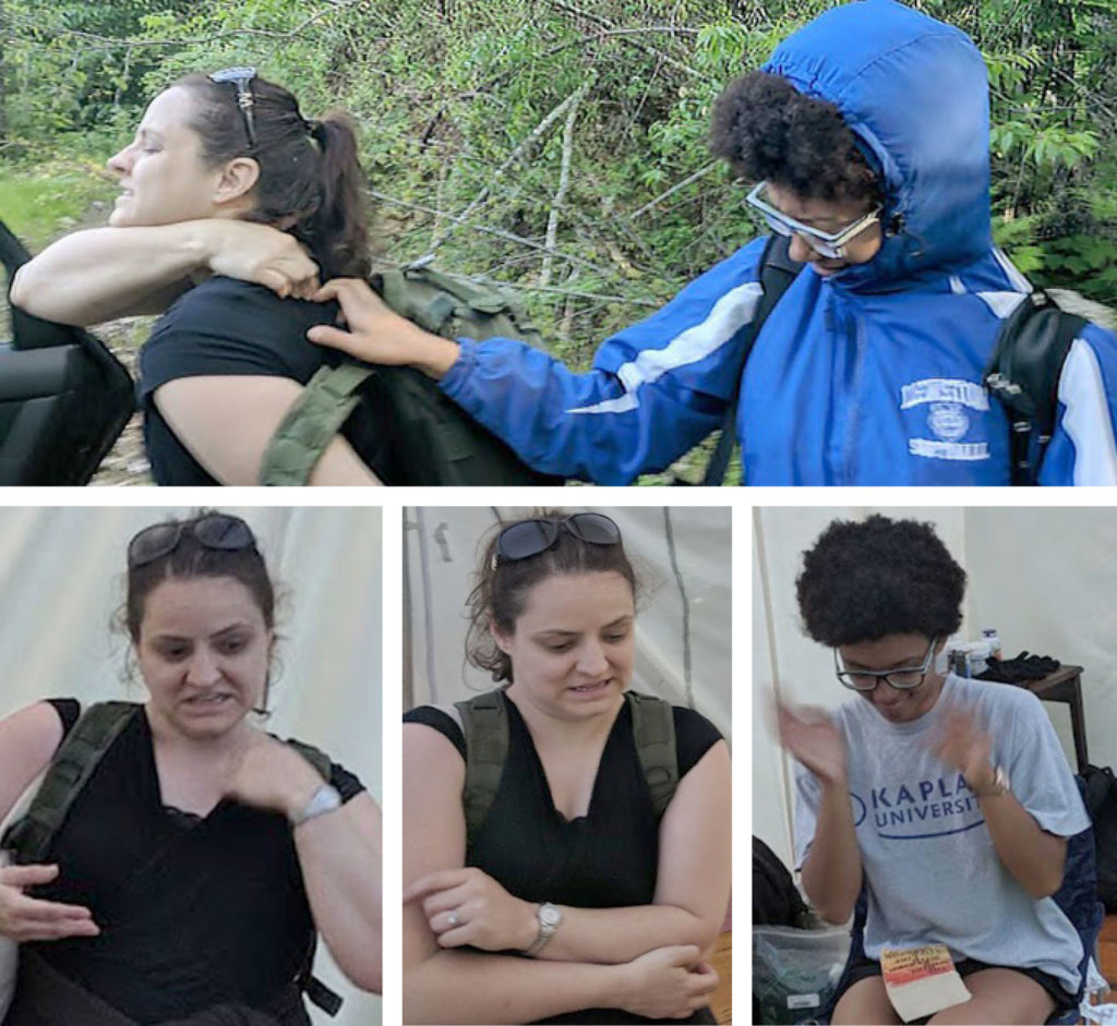 Maine camping in late spring: The writer’s wife, Corey, and niece Lauryn, swat and scratch. (Mark LaFlamme/Sun Journal)