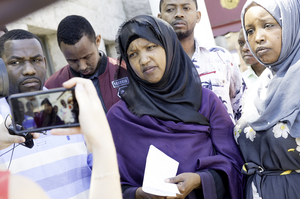 At the start of the press conference, Fatuma Hussein, executive director of the Immigrant Resource Center of Maine, read a statement on behalf of local immigrant leaders.