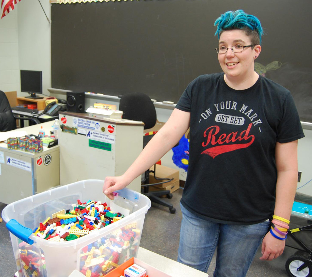 Chris Dorman, a technology librarian at the Maine State Library in Augusta, will be one of the returning teachers for Lewiston Adult Education’s summer enrichment for families. She will teach an air-propelled rockets class on July 18. Dorman is teaching a robotics class in this 2017 photo.