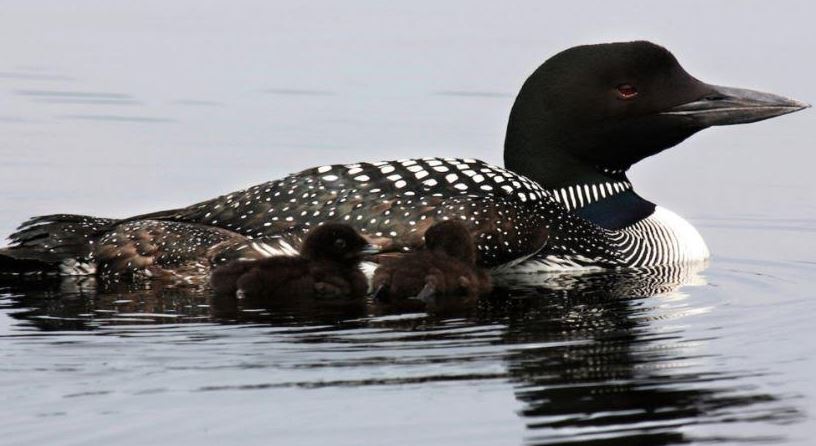 A loon with her chicks. This year marks the 35th anniversary of the annual Maine Loon Count. Thanks to measures taken to protect the birds, there are now nearly 3,000 adult loons in the state, according to Maine Audubon. (Submitted photo)