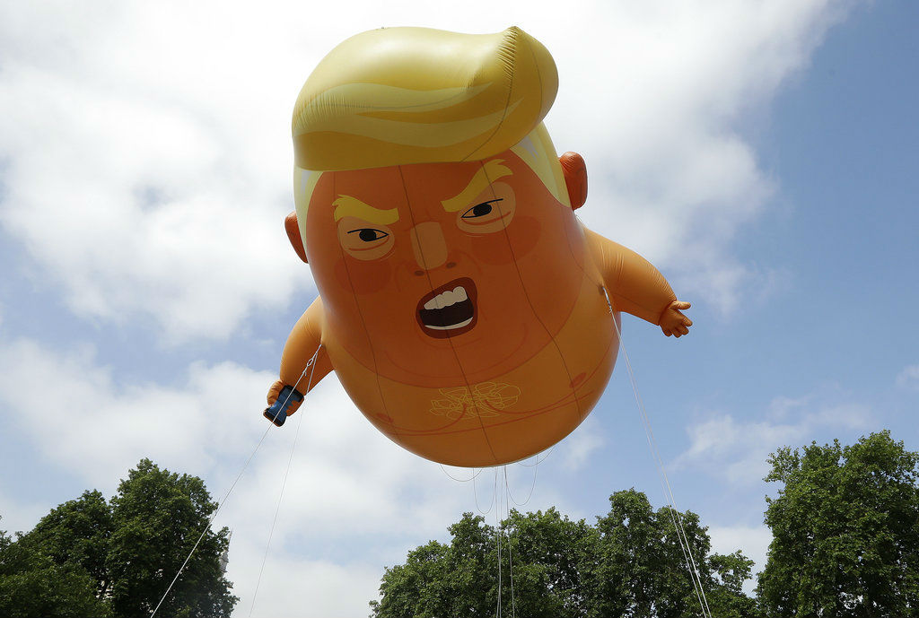 A six-meter high cartoon baby blimp of U.S. President Donald Trump is flown as a protest against his visit, in Parliament Square in London, England, Friday, July 13, 2018. Trump is making his first trip to Britain as president after a tense summit with NATO leaders in Brussels and on the heels of ruptures in British Prime Minister Theresa May’s government because of the crisis over Britain’s exit from the European Union. (AP Photo/Matt Dunham)