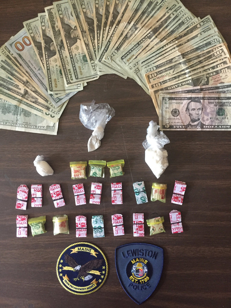Officers and agents from the Lewiston Police Department, the Maine Drug Enforcement Agency, Federal DEA, FBI Safe Streets agents, and Maine State Police seized 21 pre-packaged grams of heroin (210 dosage units) and 23 grams of cocaine or cocaine base and $1,200 in cash that was suspected to be drug proceeds. The “street value” of the seized drugs is reported to be about $9,000.