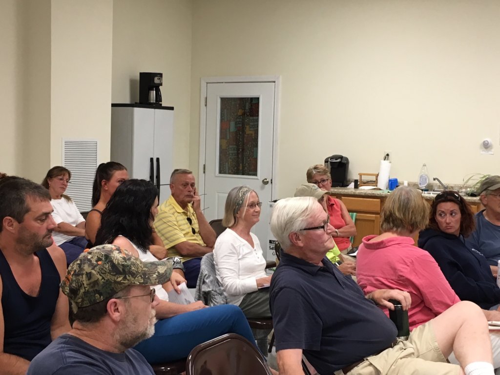 Canton residents attend a selectmen meeting Thursday night. The board decided that an open forum will be held in September to discuss how to spend about $32,000 per year in a community benefit fund. (Marianne Hutchinson/Rumford Falls Times)