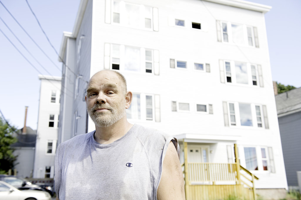 “I buy the worst of the worst in Lewiston,” said Lewiston landlord Jay Allen. He bought two apartment buildings on Blake Street that were full of lead and on the verge of being torn down. He is finished with one and is working on the other behind the one pictured. (Daryn Slover/Sun Journal)