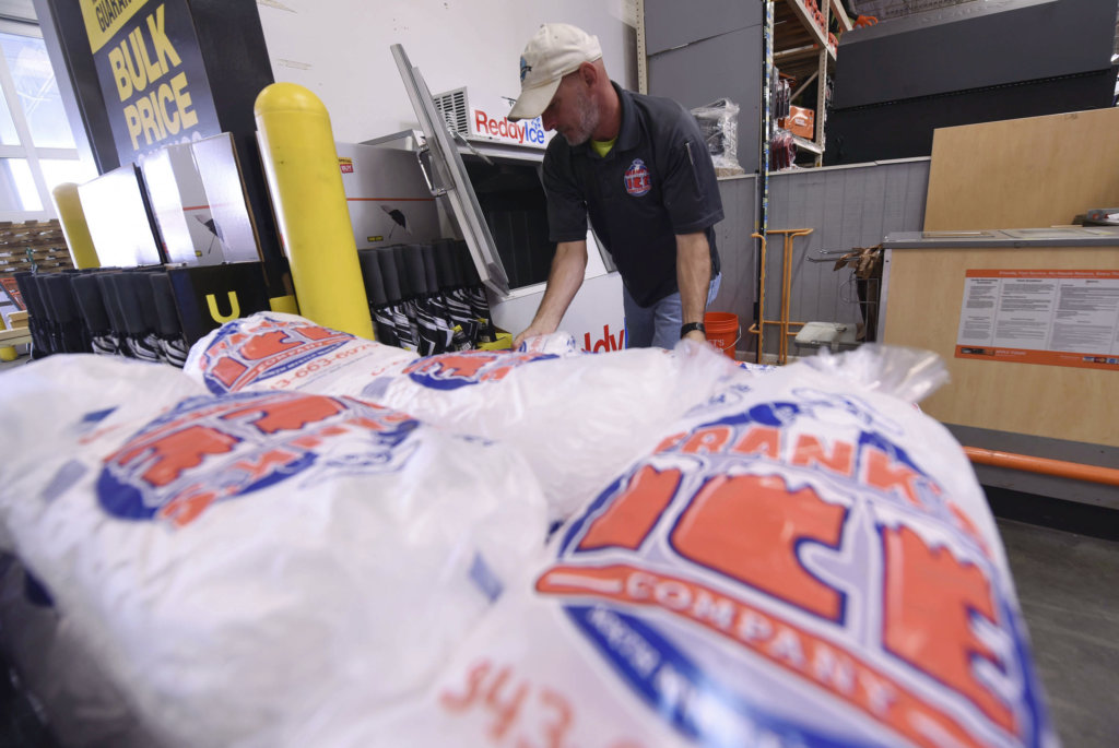 Mike Herring with Frank’s Ice Company unloads another pallet of ice as people buy supplies at The Home Depot on Monday, Sept. 10, 2018, in Wilmington, N.C. Hurricane Florence rapidly strengthened into a potentially catastrophic hurricane on Monday as it closed in on North and South Carolina, carrying winds and water that could wreak havoc over a wide stretch of the eastern United States later this week. (Ken Blevins/The Star-News via AP)
