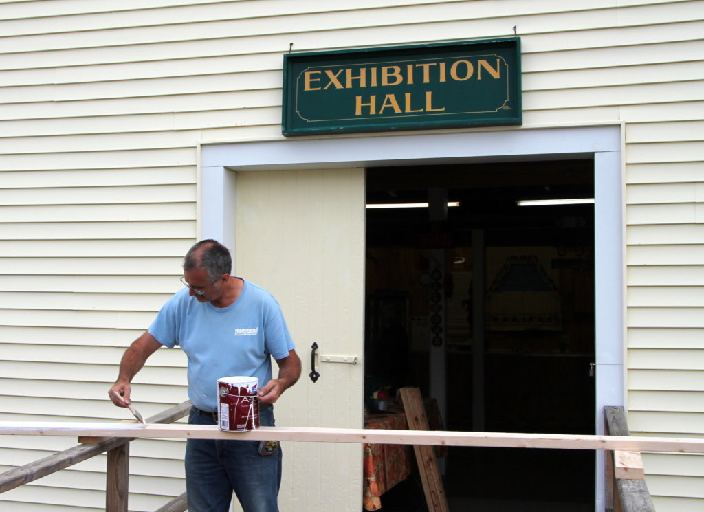 Craig Weeks paints a fence railing Tuesday for a new exhibit in the Exhibition Hall. The 178th Farmington Fair begins Sunday, Sept. 16 and runs through Saturday, Sept. 22. (Dee Menear/Franklin Journal)