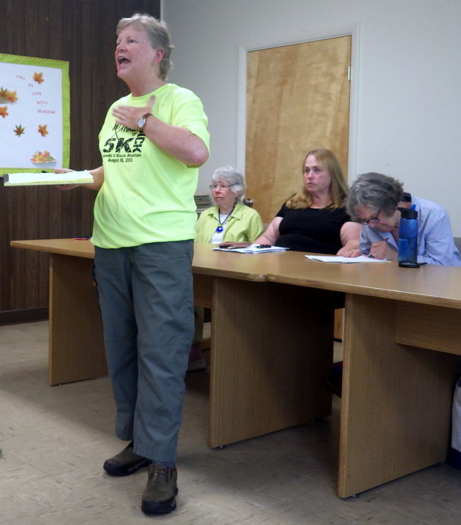Pastor Cindy Christie said she was asked by her congregation at the Rumford Point Congregational Church to be at this meeting to say, “We support the library.”