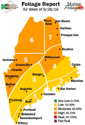 The state with the densest forest on the East Coast is starting its annual display of color. The Maine Office of Tourism says fall colors are arriving in the northern part of the state. There’s moderate color change in northern Maine, while the rest of the state is at less than 50 percent color change.
