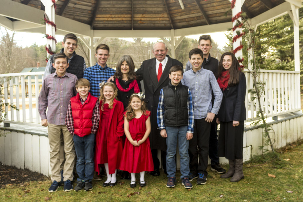 The Rev. Doug and Kathy Forbes stand with their 10 grandchildren. Forbes will deliver a special children’s message at 10 a.m. Sunday, Oct. 7, at Stow Baptist Church in Stow.