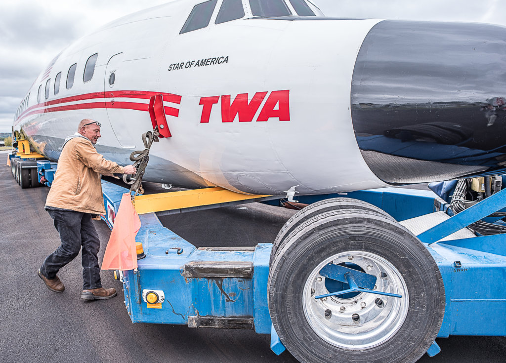 Marty Batura of Worldwide Aircraft Recovery of Omaha, Nebraska, said it’s his fourth time transporting a Constellation but the first time moving a 1649A craft. The trip’s expected to take three days.