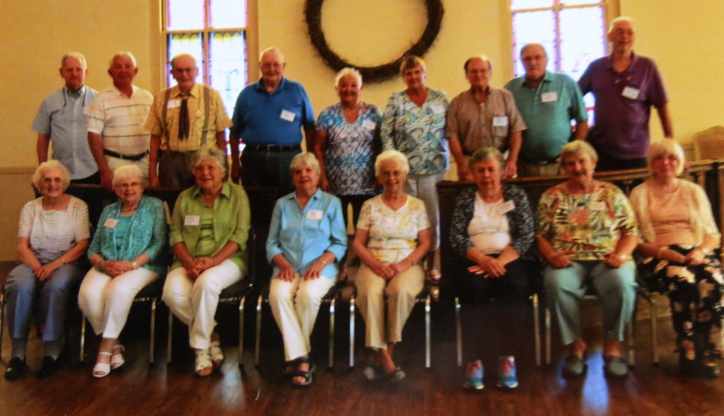 The Stephens High School Class of 1955 held their 63rd reunion on Aug. 4 at 49 Franklin in Rumford. From left, front row are Jeanne (Devost) Gaccetta, Louise (Theriault) Richard, Lorraine (Simard) Barre, Shirley (Mayo) Locke, Marlene (Murphy) Horne, Nancy (McCollough) Harlow, Olga (Kushner) Richardson and Edwina Clohosey. Back row from left are Gerald Locke, Earl Fuller, Perley Shover, Jack Holt, Marcia (Bartlett) Stearns, Lesley (Dunn) Ewald, Robert Bouffard, Richard Marcellino and Jack Blanchard.
