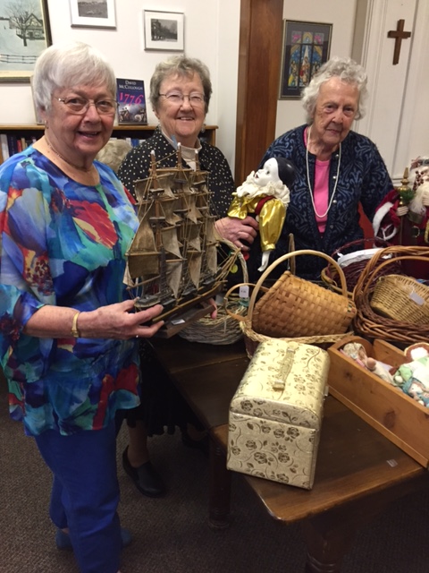 Mickie Shibles, left, Elaine Emery and Caroline Baker sort items for the annual Ticket Auction on Nov. 3 at the Second Congregational Church in Norway.