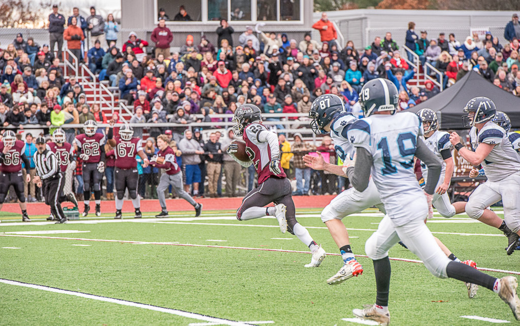 Freeport’s Adam Urlickson sprints down the field for a touchdown during Saturday’s Class E championship game in Freeport. (Andree Kehn/Sun Journal)