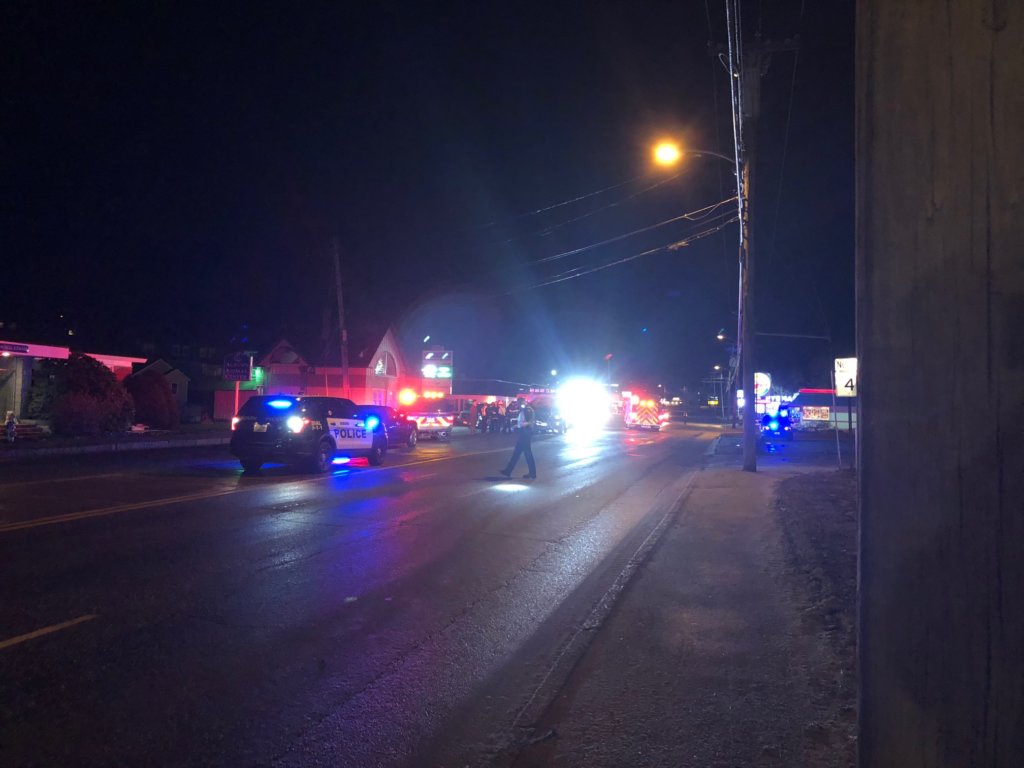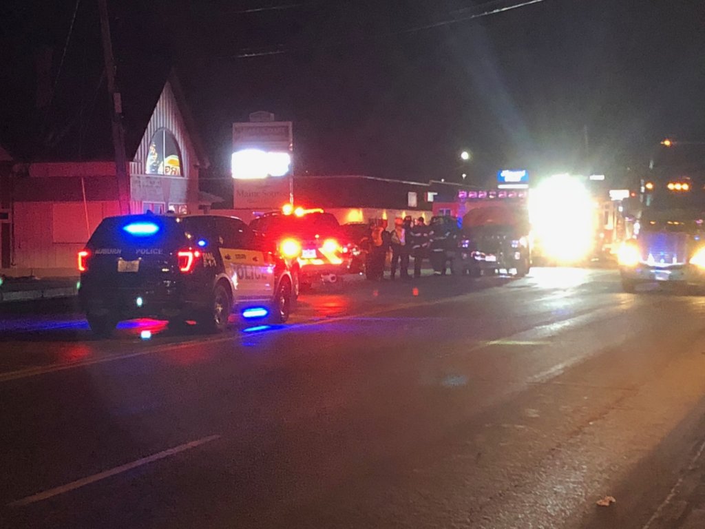 Emergency personel respond to an accident involving an ambulance on Center Street Monday night. (Photo by Sun Journal)