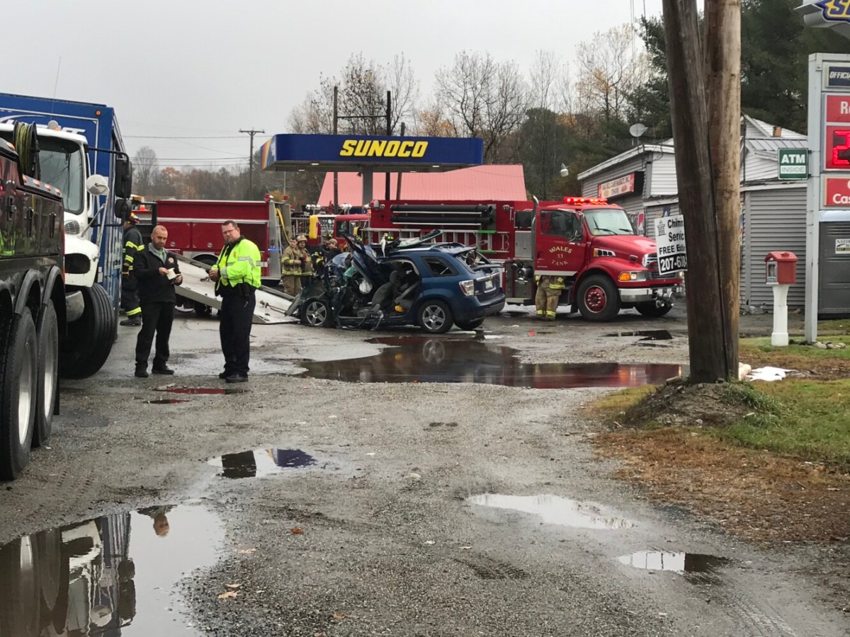Car crashes full speed into beverage truck in Sabattus; two killed, three injured