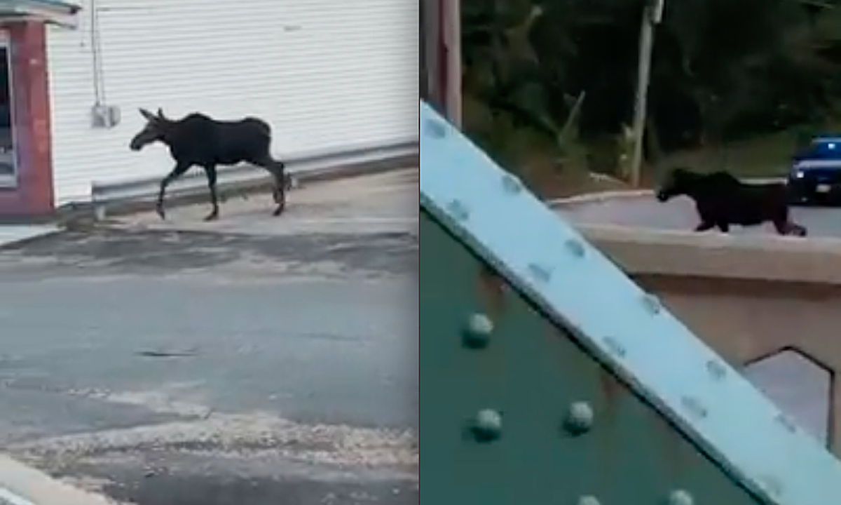 RUMFORD — Morning commuters were joined Tuesday morning by a moose who wandered into the downtown area. The moose was reported to be wandering Congress Street. Local police and game wardens were on the scene.