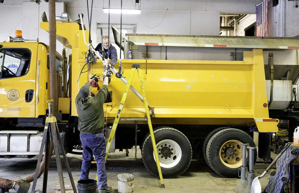 Matt Pelletier, foreground, hands Todd Ledwell tools while the Lewiston Public Works employees repair a plow truck in preparation for Tuesday night’s snowfall. Repairing snow-removal equipment is constant this time of year, welder Mike Robitaille said. (Sun Journal photo by Daryn Slover) Matt Pelletier backs a plow truck Tuesday into the Lewiston Public Works garage. […]
