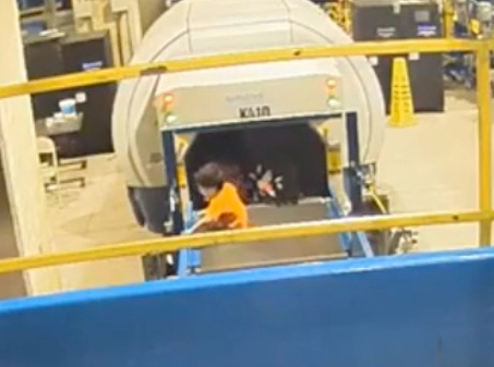 Surveillance video shows the child’s ride through a behind-the-scenes labyrinth that few travelers ever see.