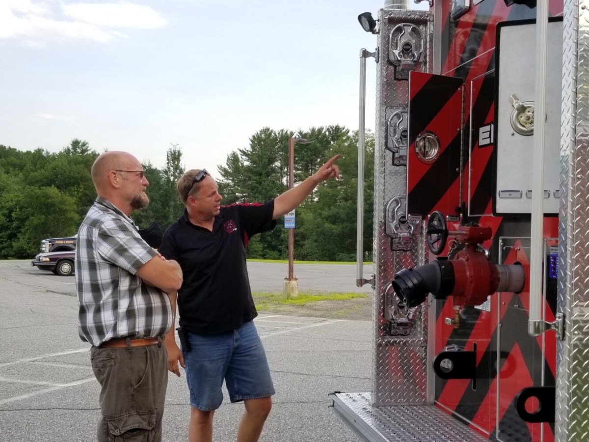 The Freightliner/E-One, tandem tanker truck can pump 2,000 gallons a minute.