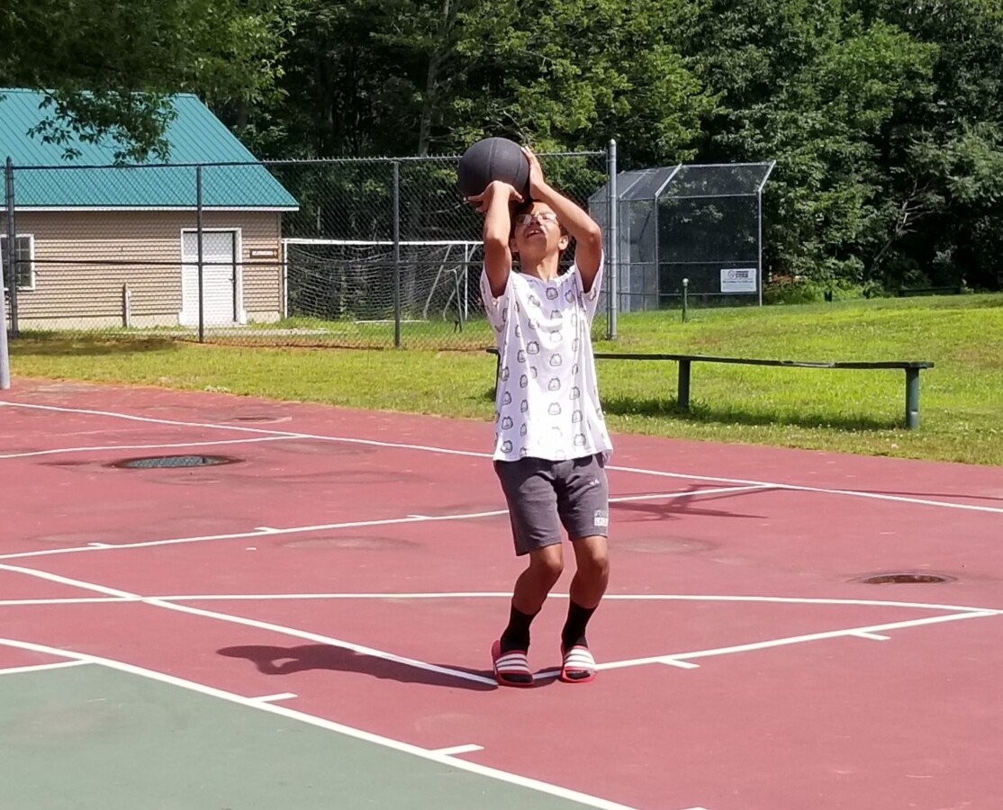 Ethan Cyr, 13, of Wilton gets in some basketball practice.