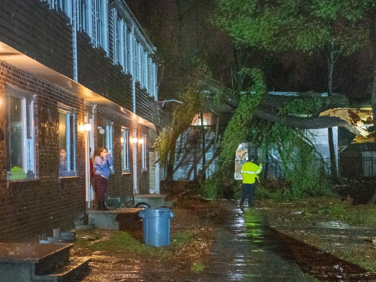 The storm knocked a tree into the side of 60 Tall Pines where a baby was sleeping in her crib.